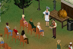 Here we are Mrs Johanna Grumblin and me talking, while some of my neighbors